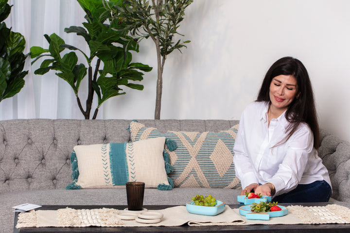 Inspired by quiet skies, coastal mornings, and the peaceful simplicity of slow living, each element in the set is designed to bring a gentle, airy elegance to your home. The cushions offer cozy comfort with a touch of refined contrast, while the bowls add a functional yet decorative touch — perfect for serving, styling, or simply admiring.